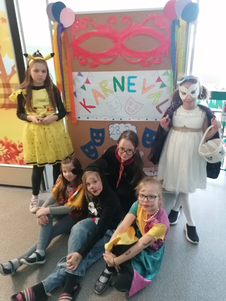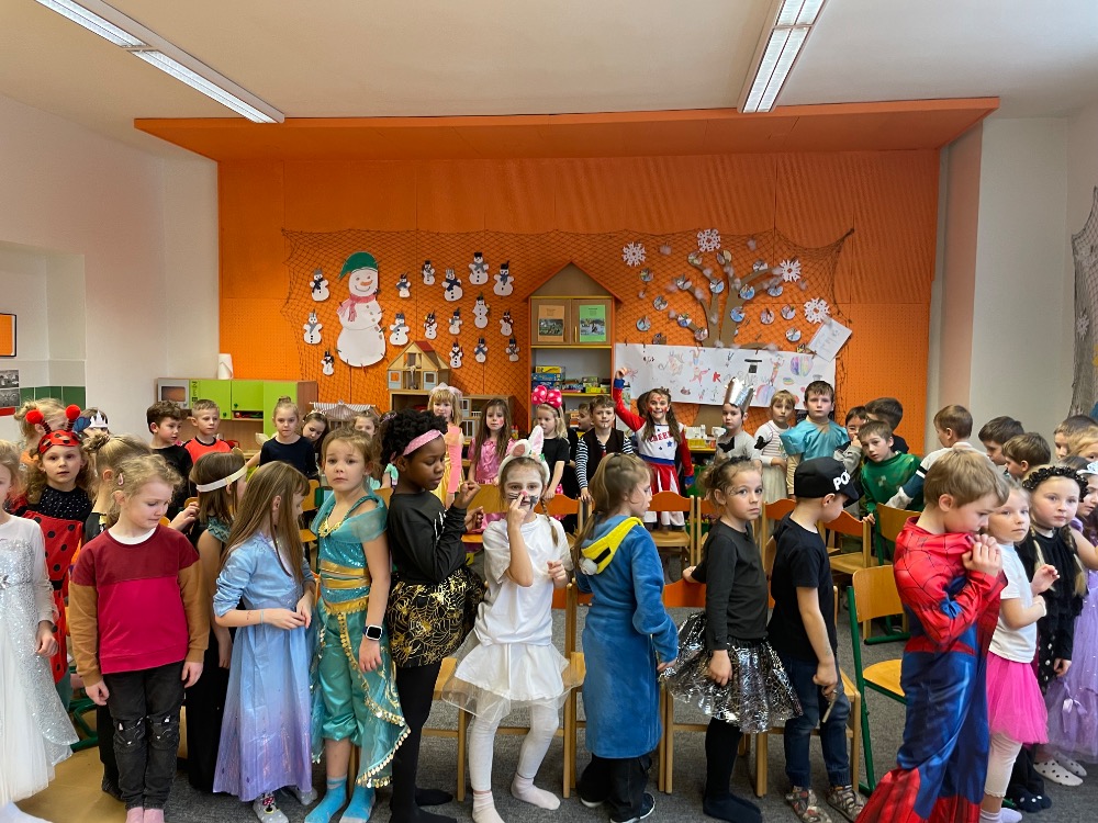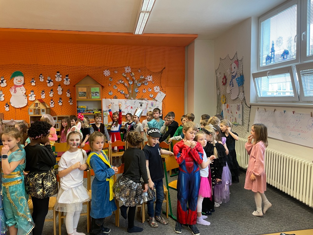 Únor je měsícem karnevalů a masopustu, a tak jsme se i my v pátek 28. února vrhli do karnevalového veselení. Prošli jsme se po chodbách naší školy, navštívili pana ředitele, vyřádili jsme se za rytmu disca v naší školní tělocvičně, kde jsme si zahráli i molekuly… Kostýmy byly pestré a nebylo možné vybrat ten nejlepší, takže vyhráli všichni :-)! Na závěr si děti vybraly drobnost na památku na letošní karneval. Tak zase za rok…….