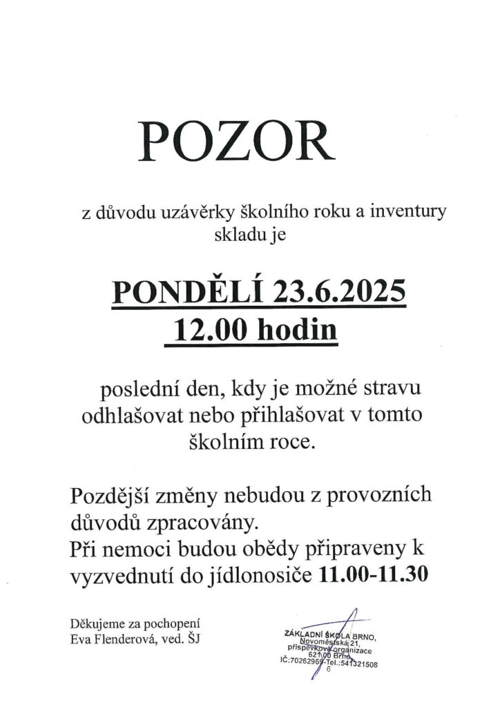Poslední možnost odhlášení obědů