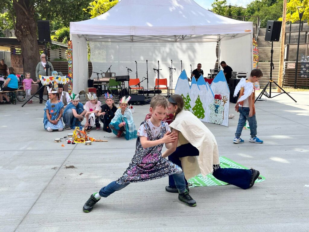 Počasí nám opět nepřálo, vítr foukal a odlétaly nám kulisy, ale pořadatelé bleskurychle zasáhli a rekvizity nám pomohli udržet na svých místech. Děti se vžily do svých rolí a s plným nasazením představení odehrály. Jako vždy byly báječní :-)!