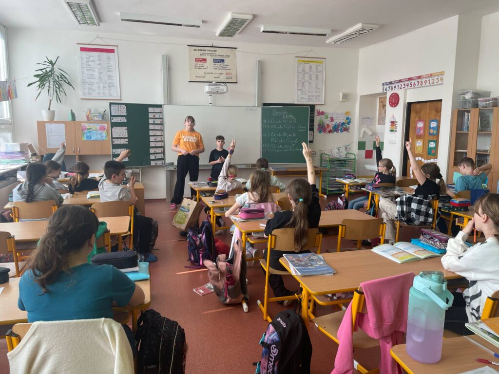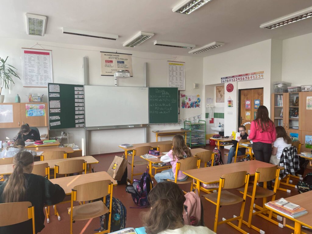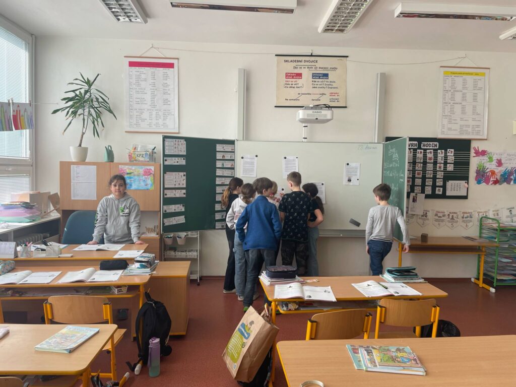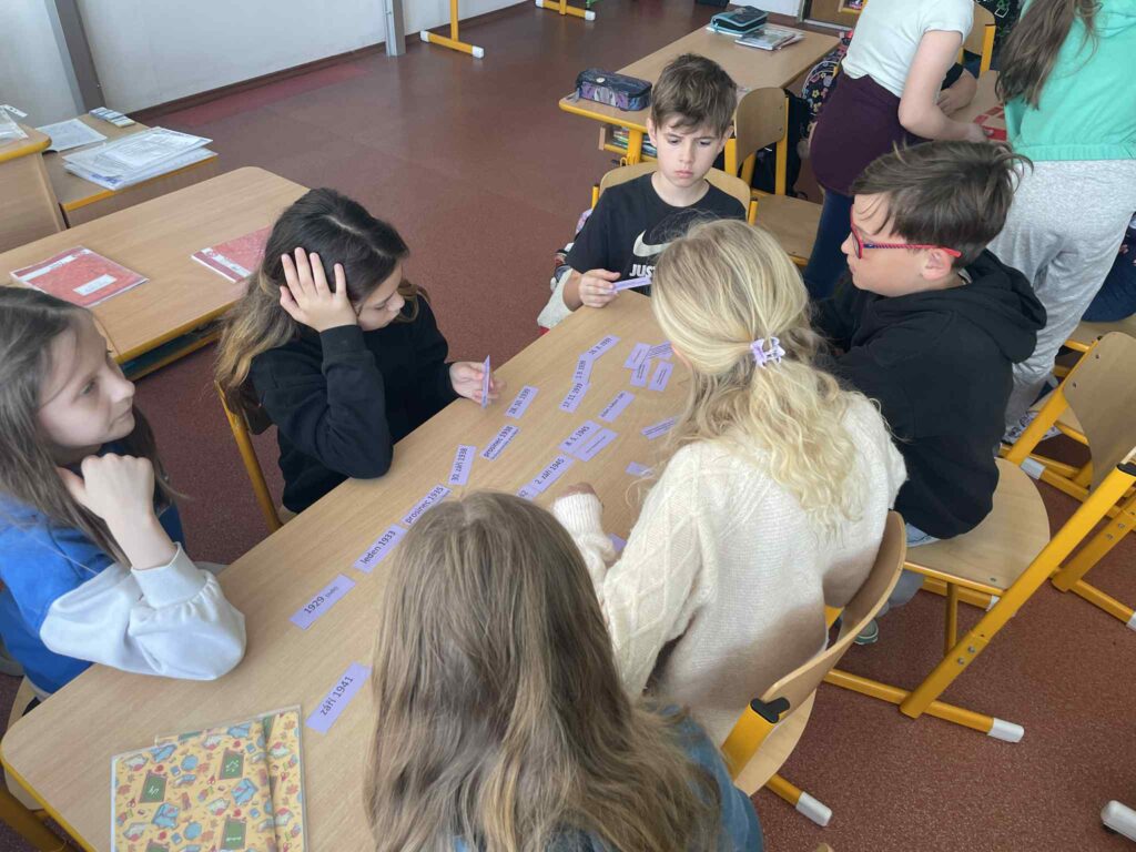 - dne 7.5 si pro nás žáci z druhého stupně připravily tématický den k výročí 80. let od konce 2. světové války. Žáci měli skvěle zpracované aktivity a později nás čekal i film Chlapec v pruhovaném pyžamu z tohoto období. Ten nám ještě blíže ukázal toto období. Na spoustu věcí jsme již dokázali odpovědět díky hodinám vlastivědy, některé pro nás byly zase nové.