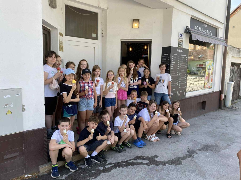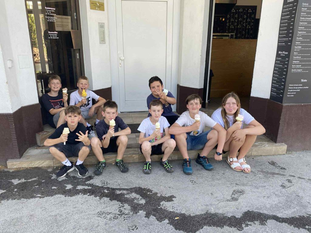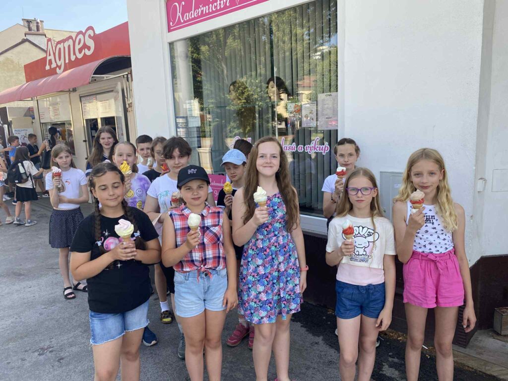 - Potom, co jsme zvládli splnit veškeré školní povinnosti, odevzdat učebnice, poklidit třídu a vyprázdnit skříňky jsme poslední společný den jsme zakončili skvělou místní zmrzlinou. Každý si vybral příchuť dle libosti a výborně jsme se v teplém počasí ochladili.