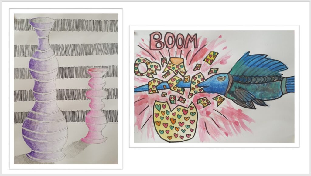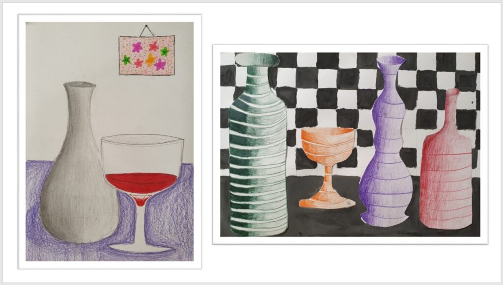 Ve výtvarné výchově jsme se zabývali kresbou váz a zátiší. Zkoušeli jsme se poprat i s jejich stínováním. Ukázku naší práce můžete vidět níže: