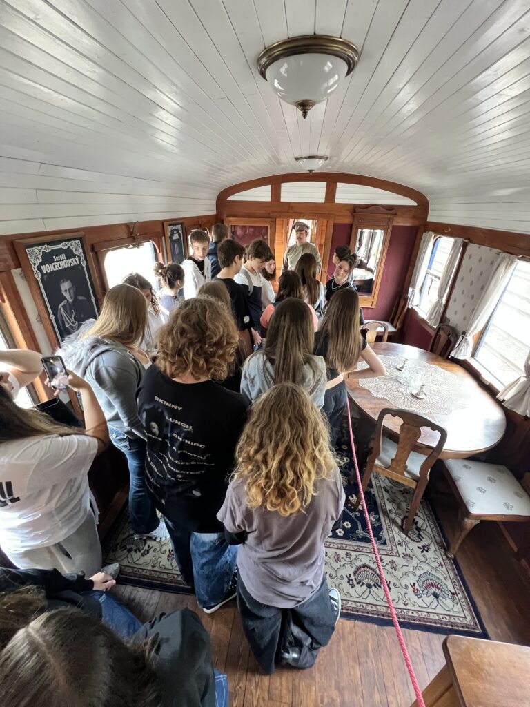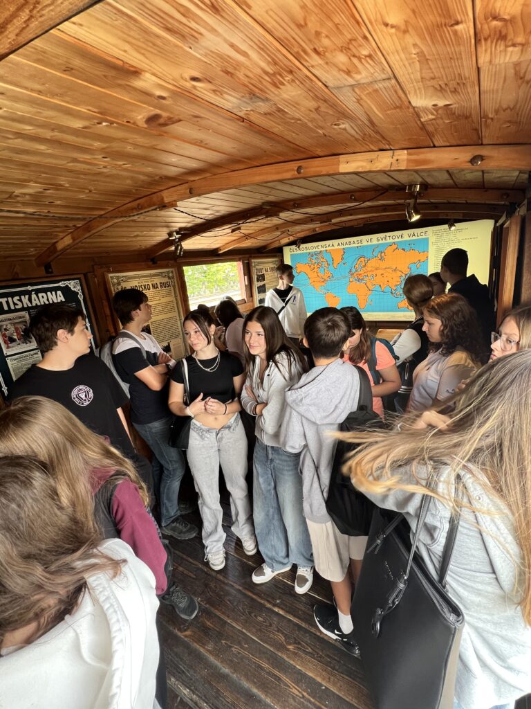 V rámci výuky dějepisu jsme navštívili putovní výstavu Legiovlak v brněnské Slatině. Na úvod žáci zhlédli krátký dokument, který jim přiblížil celkový historický kontext. Poté si prohlédli jednotlivé vagony, například ubytovací vozy legionářů, tzv. těplušky, důstojnický vagón, zdravotní vůz, ale také uniformy či výzbroj. Průvodce jim podal mnoho zajímavých informací o životě československých legionářů a jejich cestě napříč Ruskem.