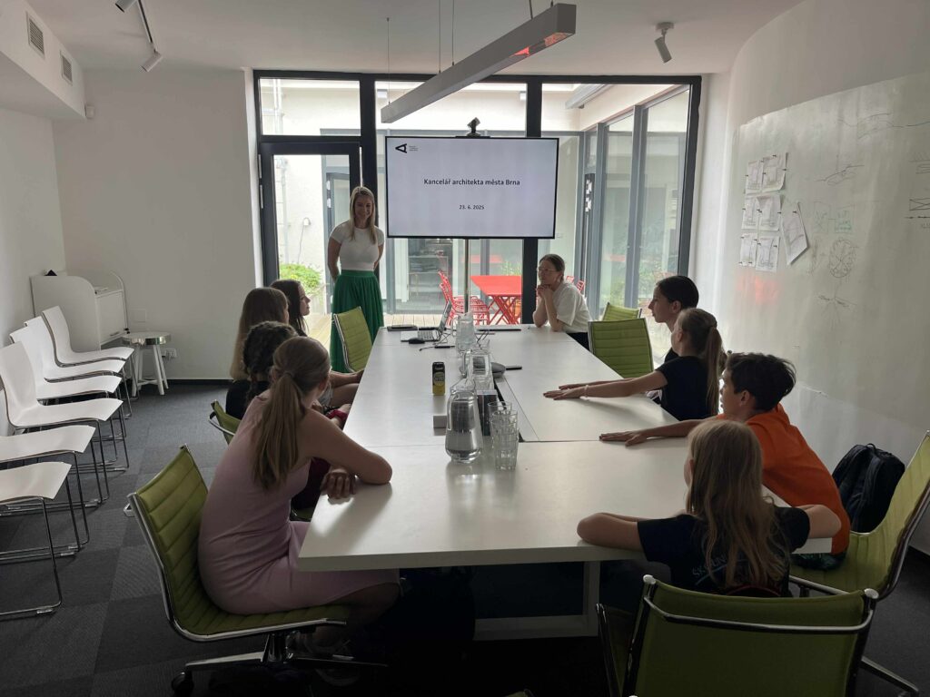 V pondělí 23. 6. se členové Školního parlamentu ZŠ Novoměstské vydali na návštěvu Kanceláře architekta města Brna (KAM Brno), kde prezentovali svůj projekt s názvem „Lavičky a koše“.